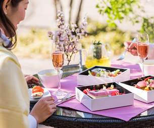 江戸時代から茶会の場や桜の名所として親しまれてきた御殿山。今でもホテルに隣接する御殿山庭園は、春になると桜色に染まり、美しい景色を楽しむことができます。この庭園を望む「SAKURAテラス」でお楽しみいただけるメニューをはじめ、花の香りを楽しむ アフタヌーンティーに、桜を使った遊び心あふれるスイーツ&ブレッド、カクテルなど、麗らかな春のひとときを堪能する新しい季節の訪れに、心弾む演出を提供いたします。